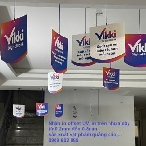 sản xuất Vật phẩm quảng cáo – Dangler nhựa. In offset UV, bế gia nhiệt